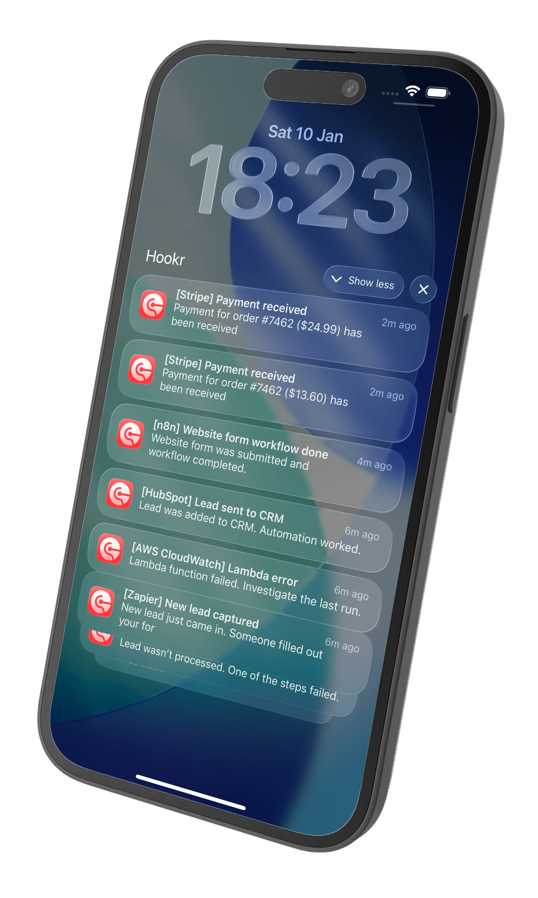 Hookr puts webhooks directly in your pocket with instant mobile notifications that actually get your attention.